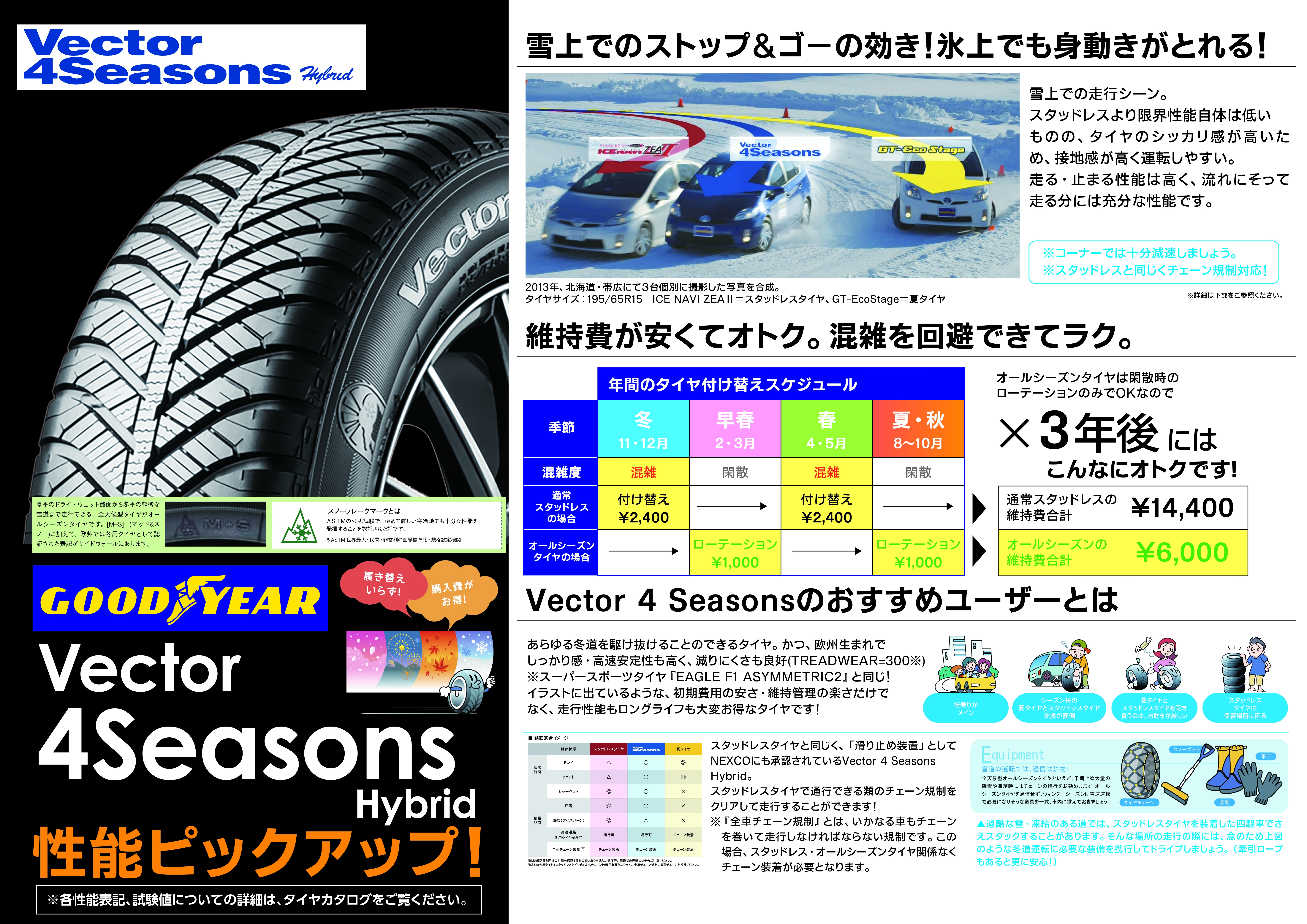 夏の性能と冬の性能を併せ持ったタイヤです