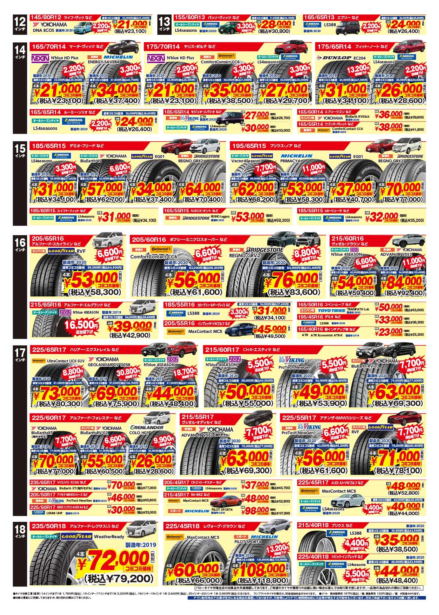 そんな時だからこそ、バロータイヤ市場では、お値打ちなタイヤや、型落ち品、旧年品などコストパフォーマンスを重視したセールとなっております!!