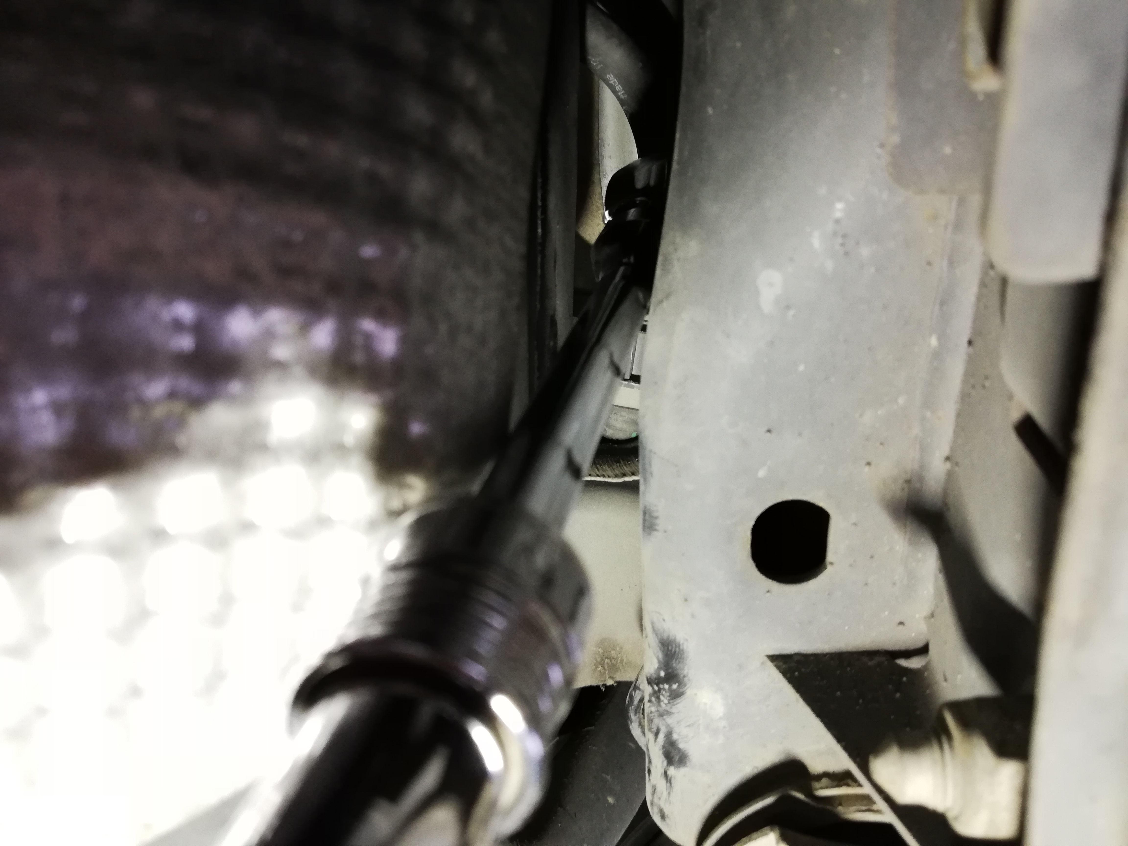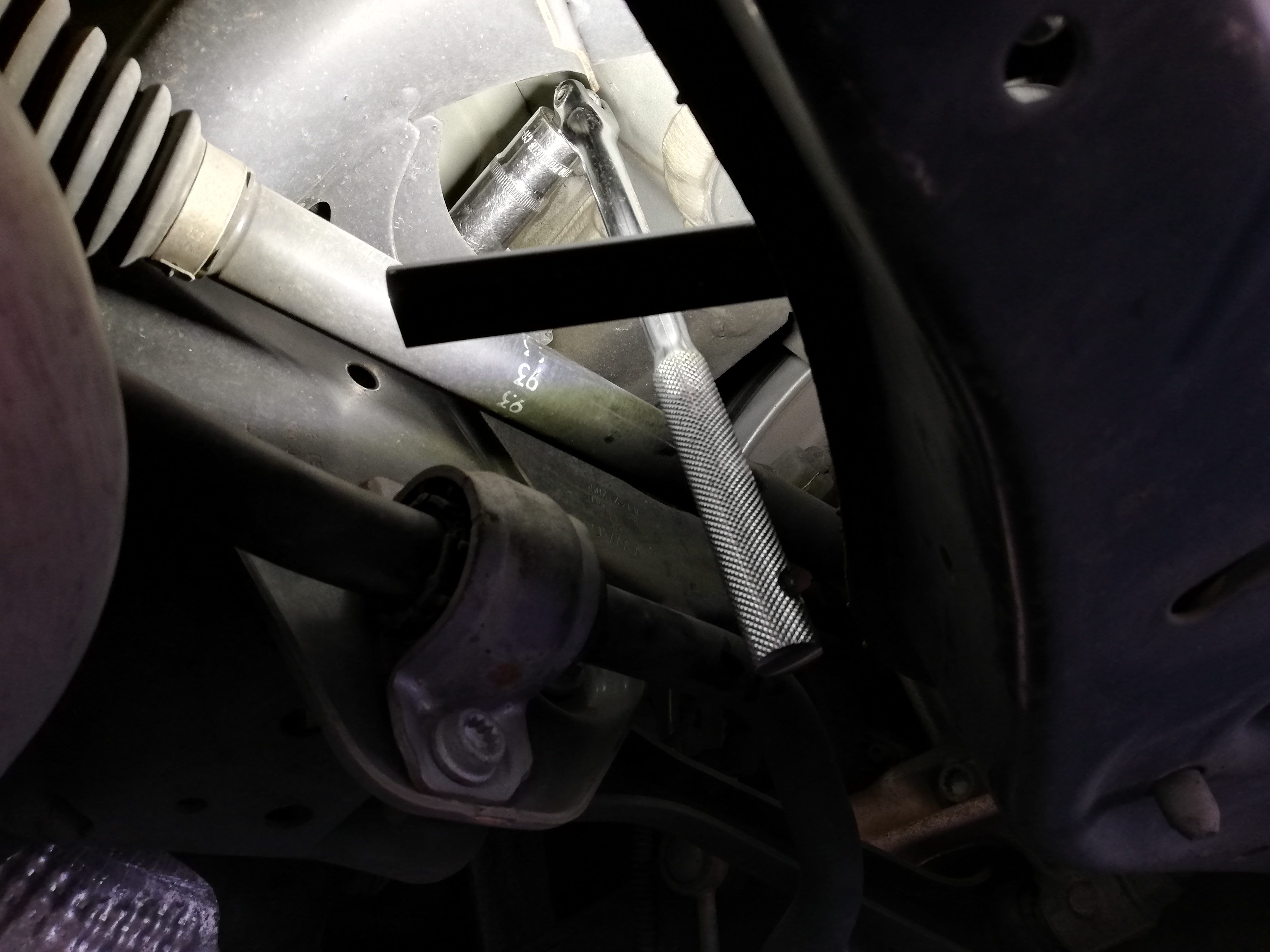 ナットがやっと緩んだので調整と思いきや調整カムが目視出来ない位置に↓