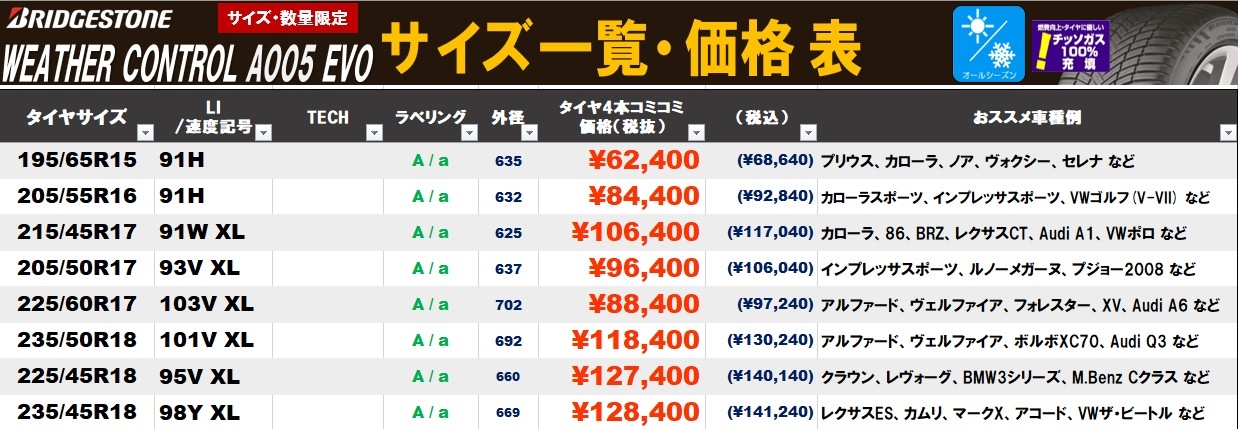 ブリヂストン Weather Control A005 EVO