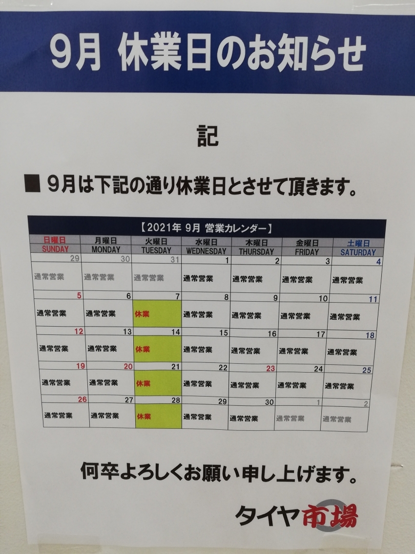 9/28(火)は店休日となります。