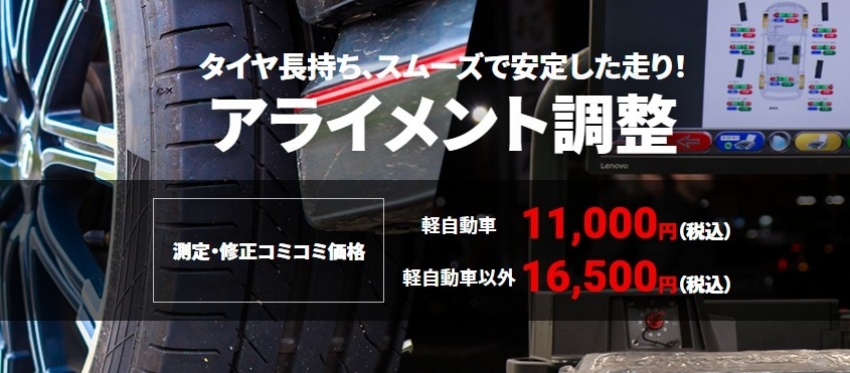 普通車 アライメント調整料金変更のお知らせ