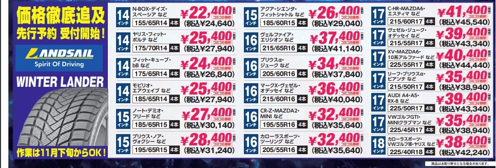 工賃コミコミで驚きの価格であのランドセイルのスタッドレスタイヤが手に入ります!!
