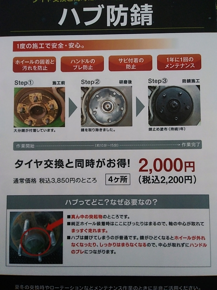 今日はタイヤ市場で人気の追加作業のハブ防錆について説明していきます!!