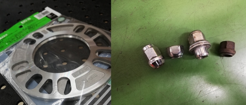 ホイールスペーサー2枚重ねとか、ナットの形状違いを無理やり取り付けていたり・・・