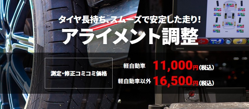 タイヤの購入、取付作業の他にもアライメント調整の予約もやっています!!!