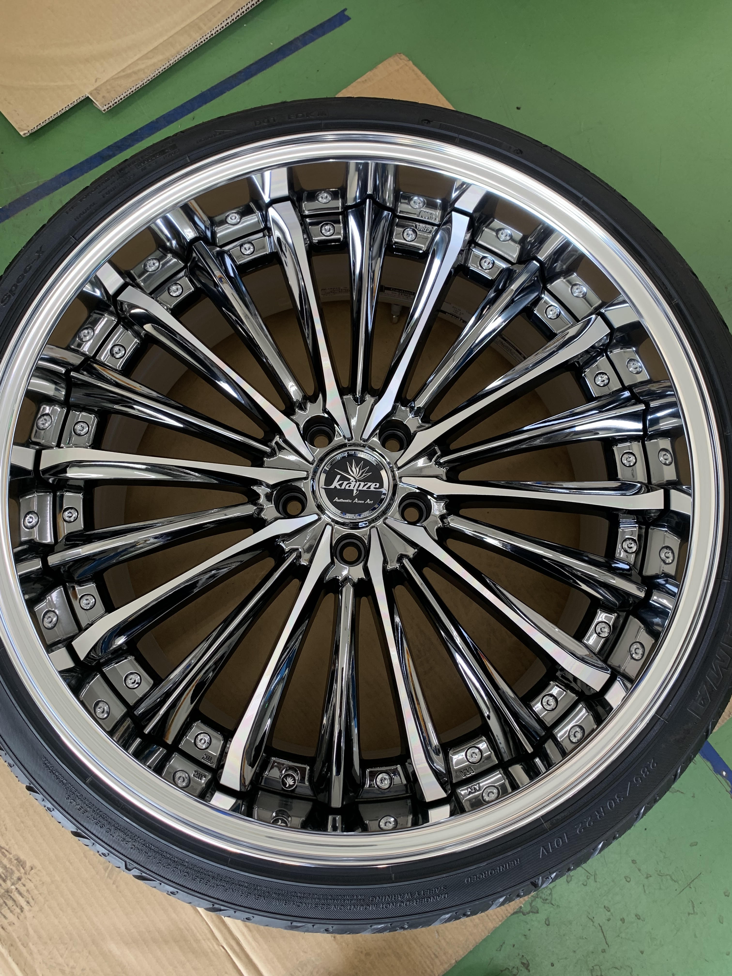 お客様のご要望でなるべく深リムになるようにと、車体のツラに近づけるとの事で