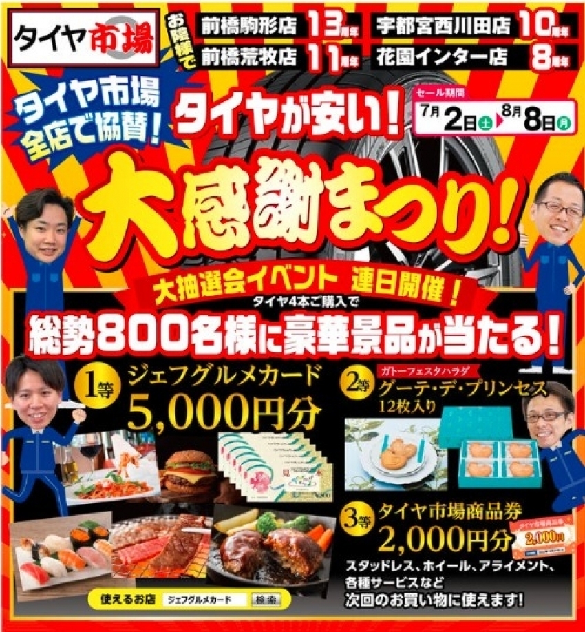 8/8までなので、この機会に是非タイヤを4本交換して1等当てちゃいましょう!!