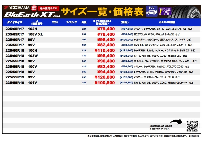 ヨコハマから出ているブルーアースXTというSUV向けタイヤです!