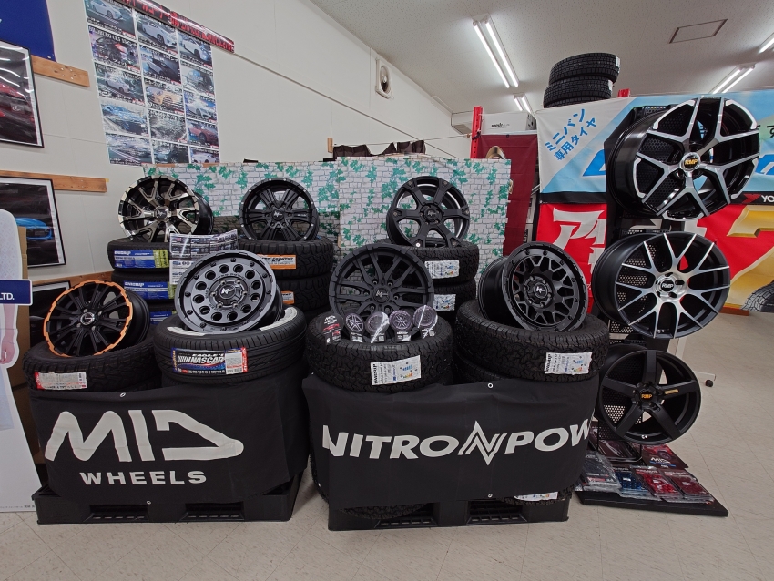 当店はMID(マルカサービス)のディスプレイショップとなっておりますのでホイール展示も多めになっております。