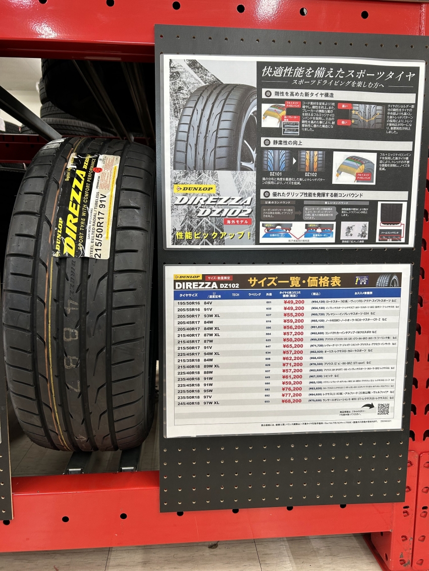 ご紹介するスポーツタイヤは、DUNLOP(ダンロップ)DIREZZA DZ102