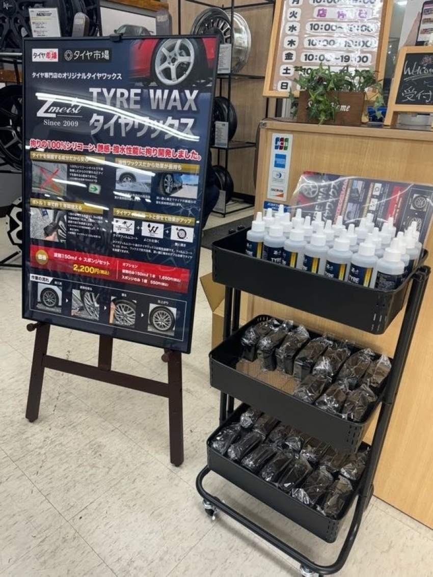今回は、タイヤ市場で販売しているオリジナルタイヤワックスのご紹介です!