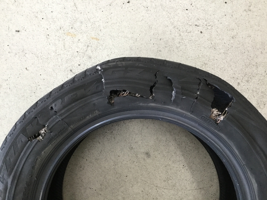 走行中にバーストがおきるとタイヤの機能が失われ重大な事故につながる可能性があります。