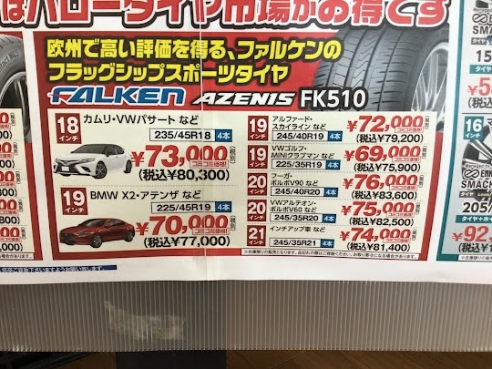 タイヤは欧州で高く評価されるファルケンのフラッグシップタイヤ AZENIS FK510 です。