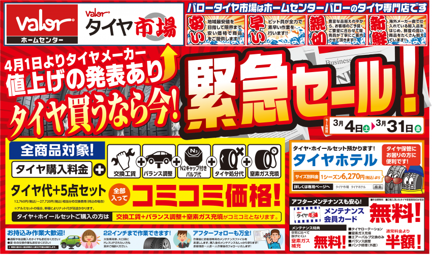 値上げ前 緊急タイヤセール 開催中です!