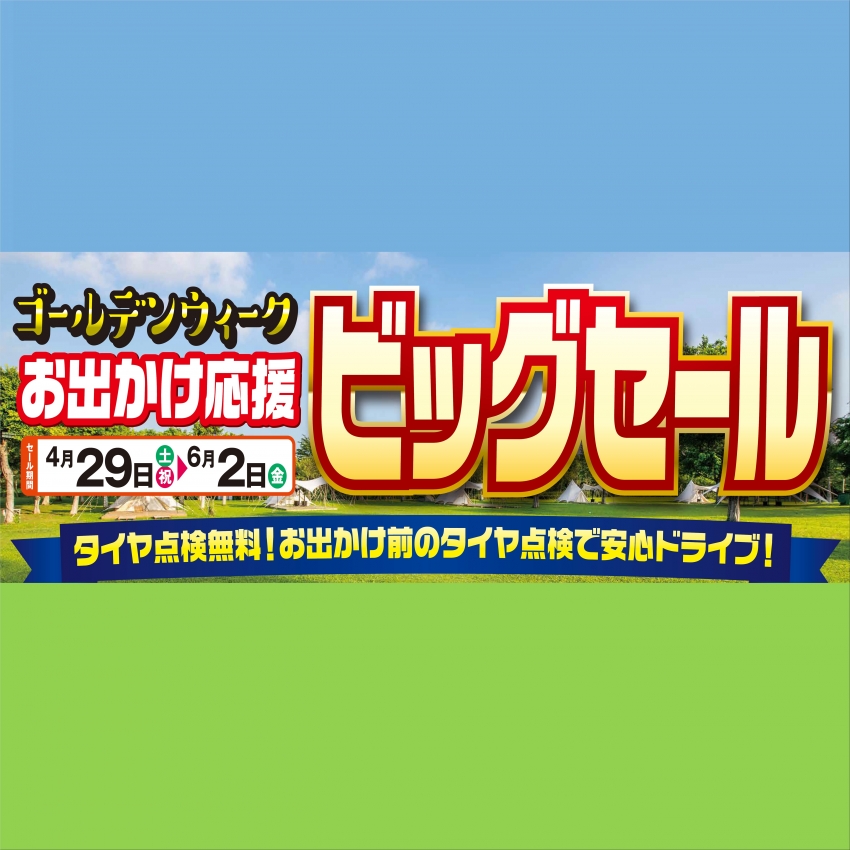ただいま"GWお出かけ応援 ビックセール"と題しまして、お買い得セール開催中!!