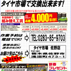 タイヤ市場では、新春びっくり価格で商品を取り揃えて、皆様のご来店をお待ちしております。