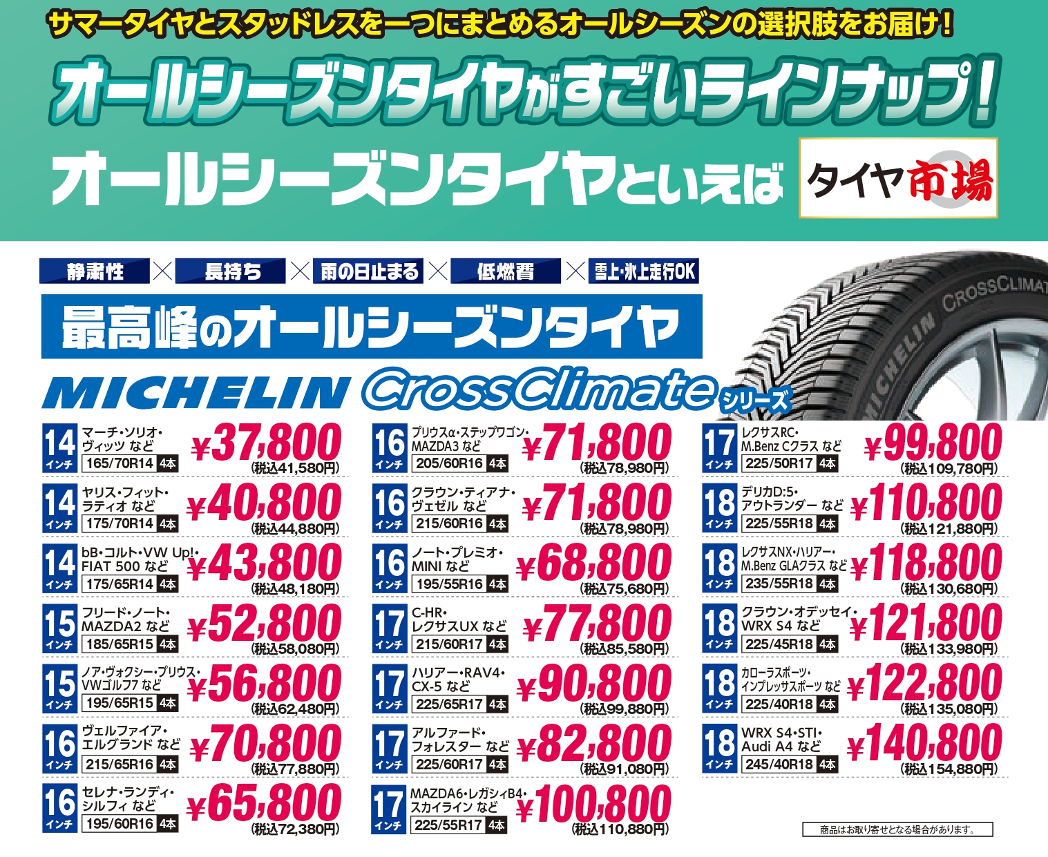 今話題沸騰中の『オールシーズンタイヤ』もセール価格で