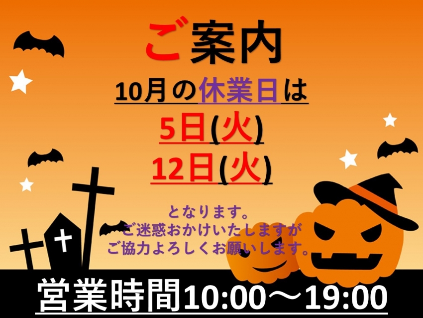 10月休業日ご案内