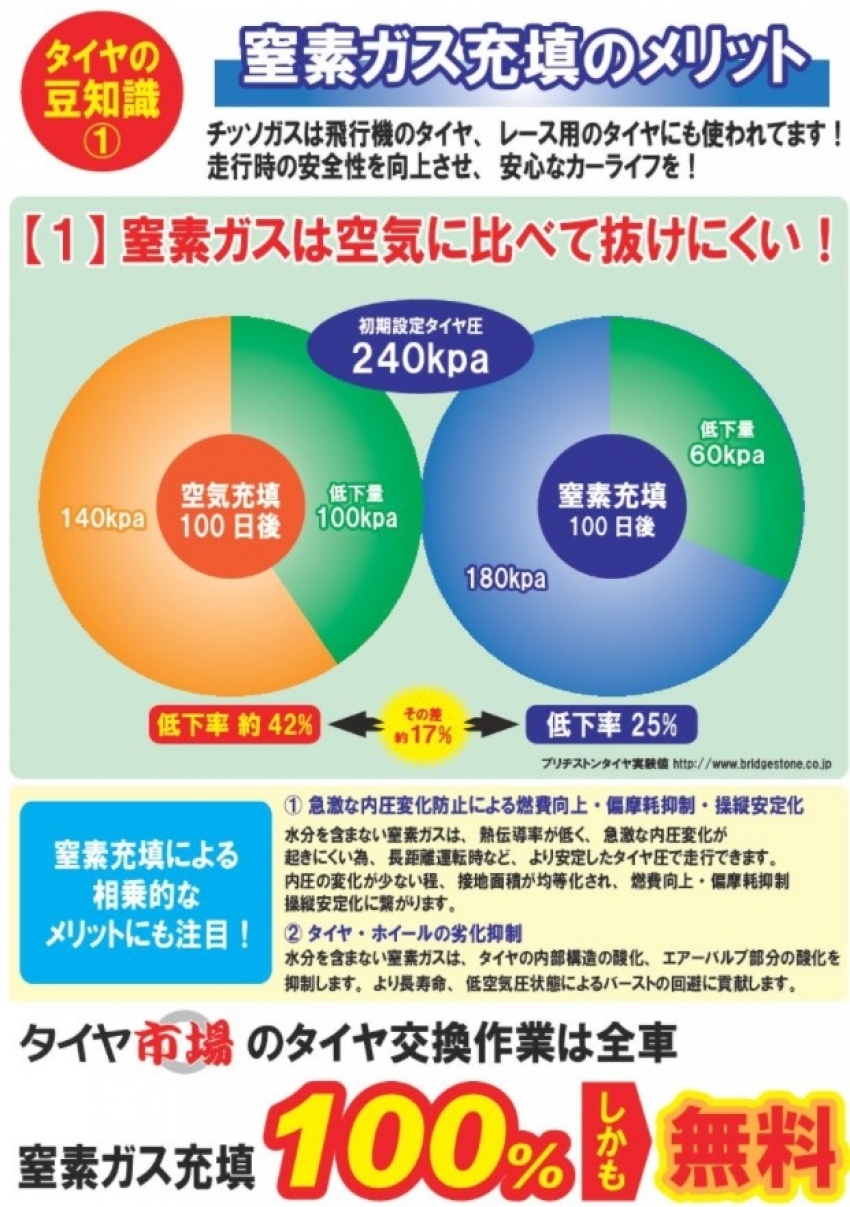 タイヤ市場は窒素ガス無料!!!