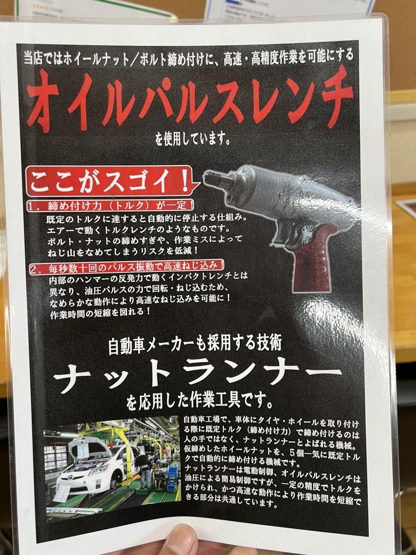 当店では、タイヤの取り付けの際に、オイルパルスレンチを使用しております!