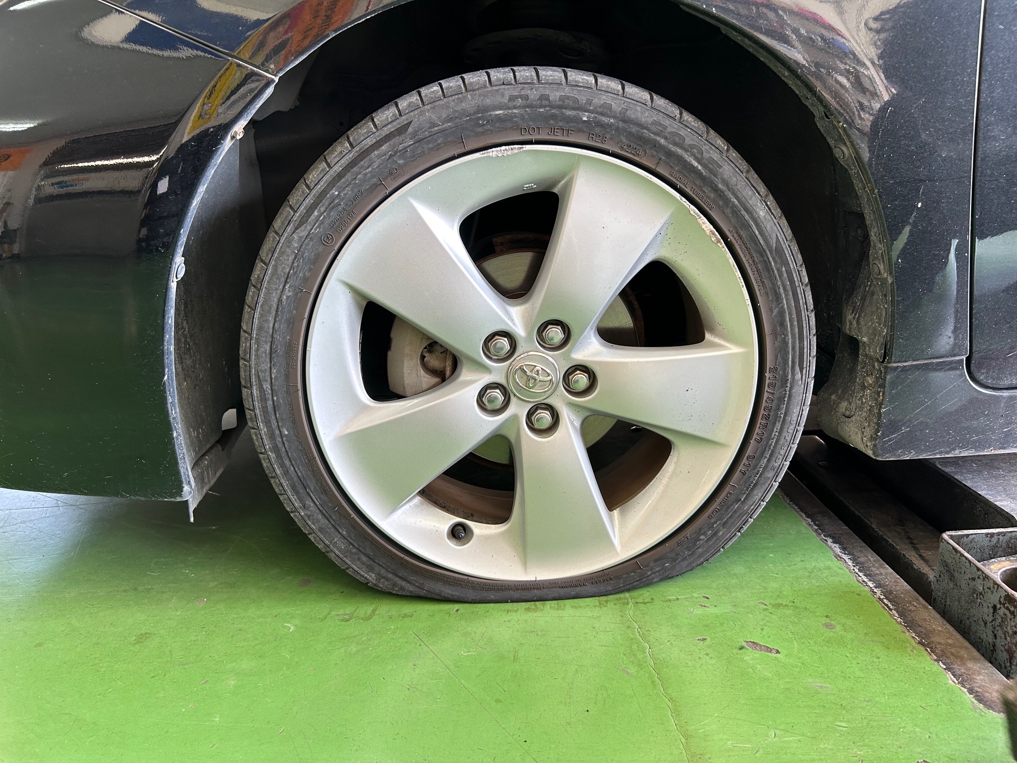 今回は左前のパンクしたタイヤの