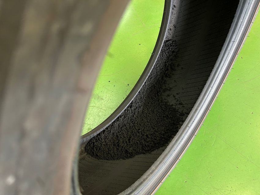 中から砂のようなタイヤの破片が