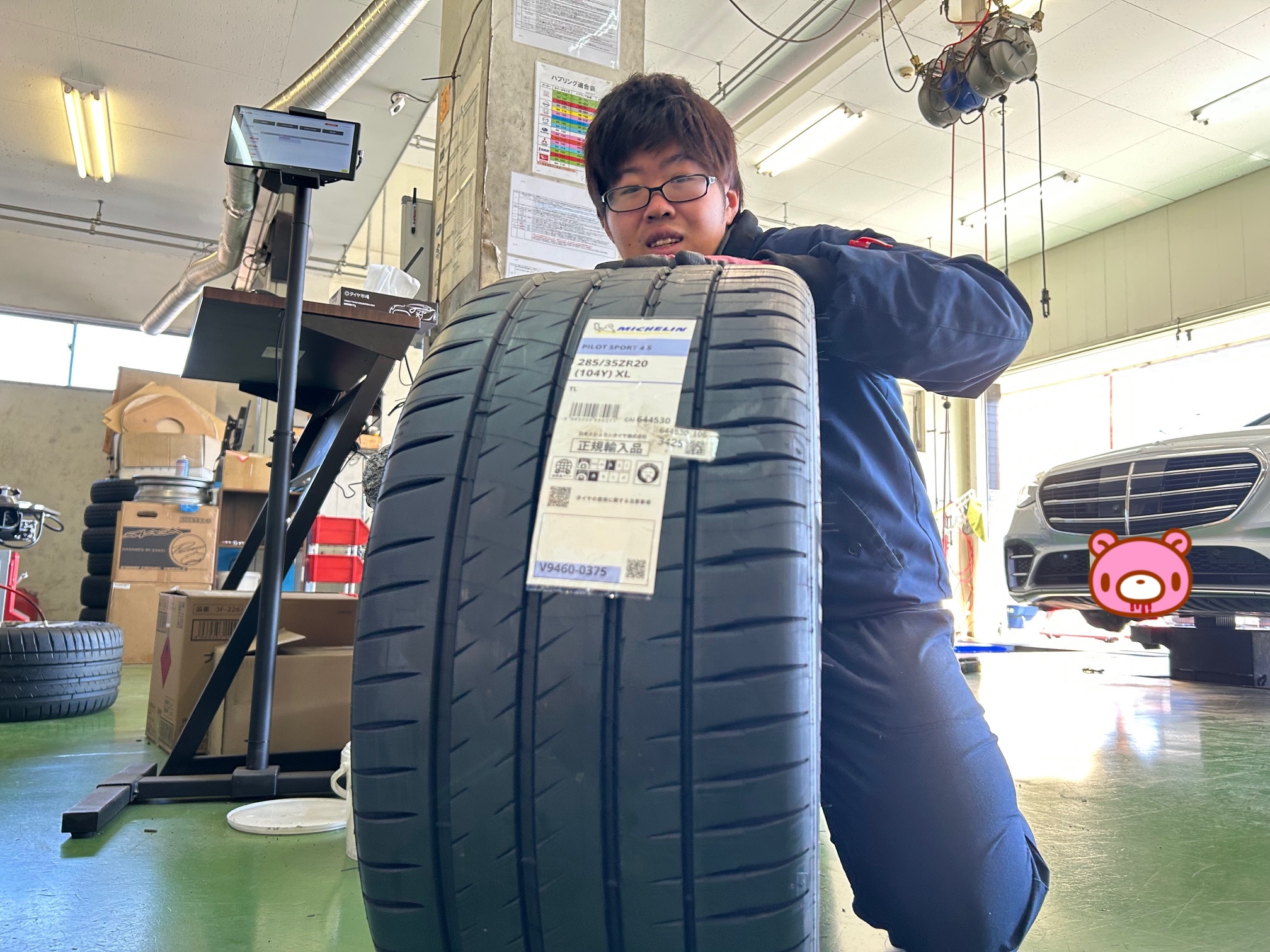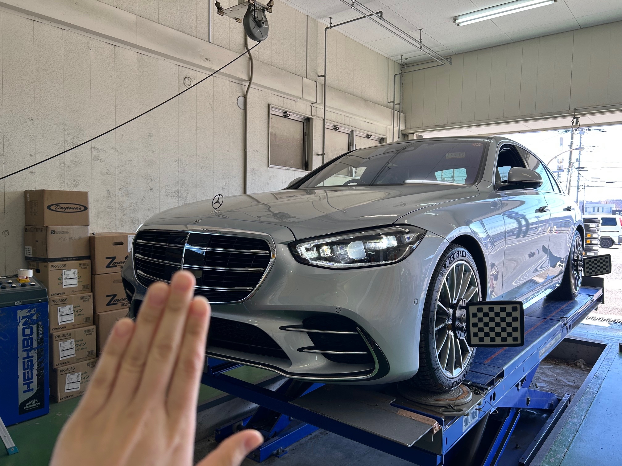 ベンツのSクラス、タイヤ4本交換!&アライメント調整!お任せあれ(^^ゞ