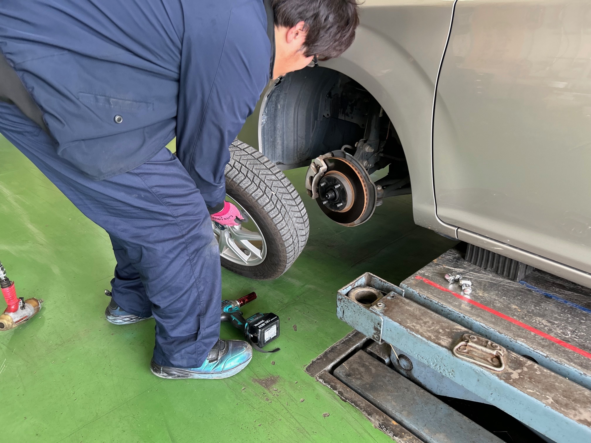 車にタイヤを取り付けます(*^^)v