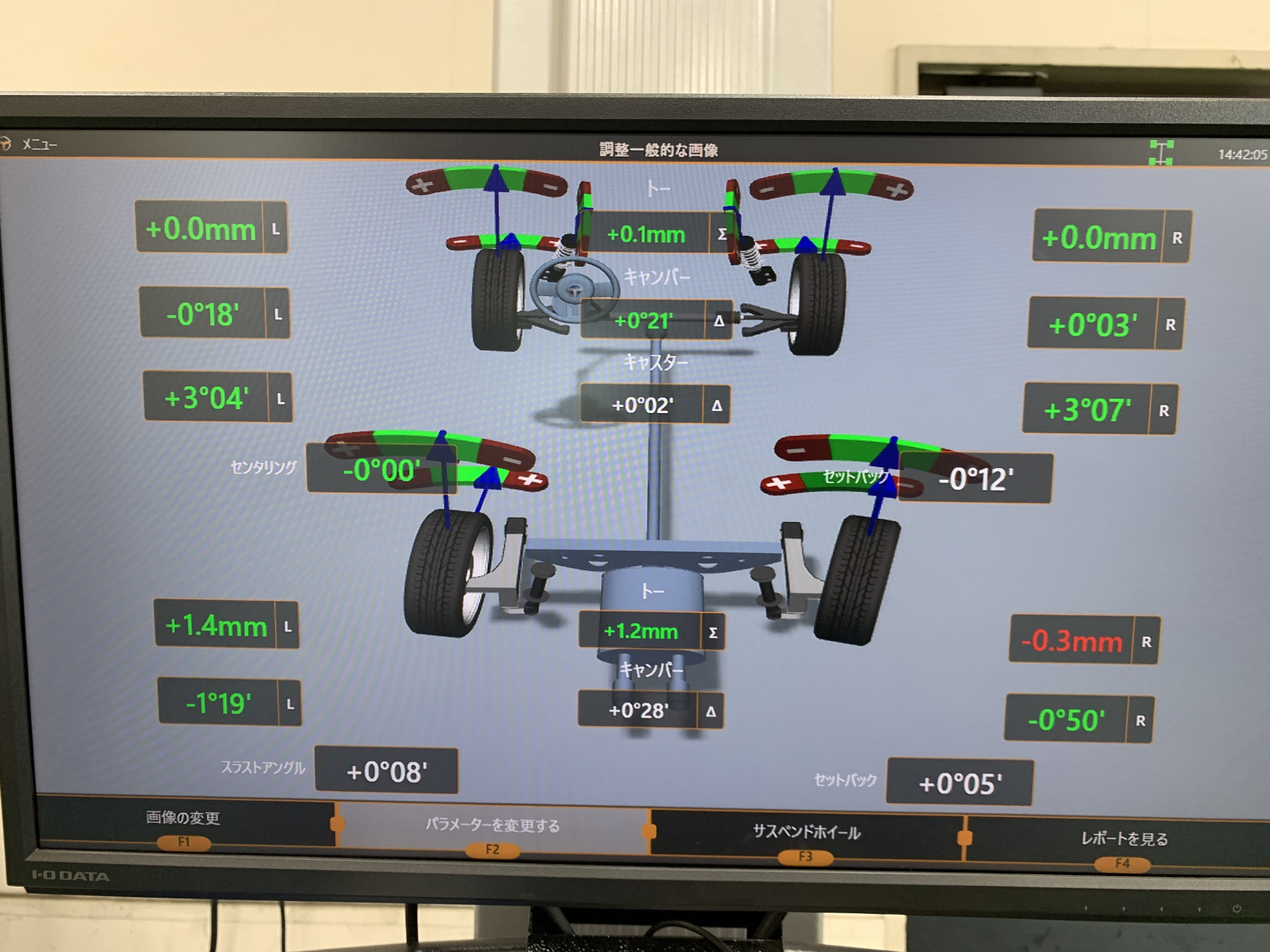 タイヤを交換したのちアライメントの測定をしました