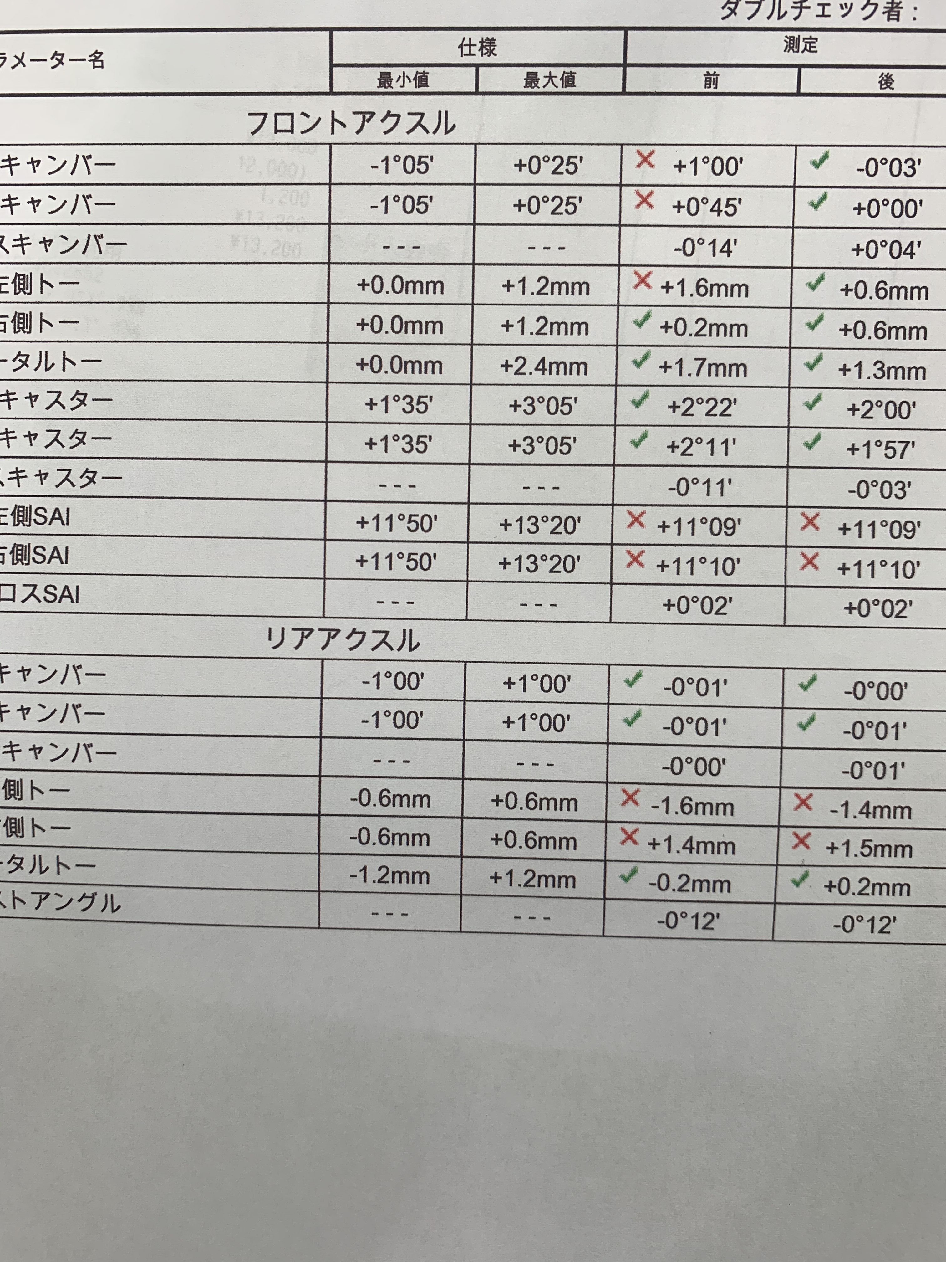足回り関係もいじっているようで、測定してみるとかなり狂いがありました。
