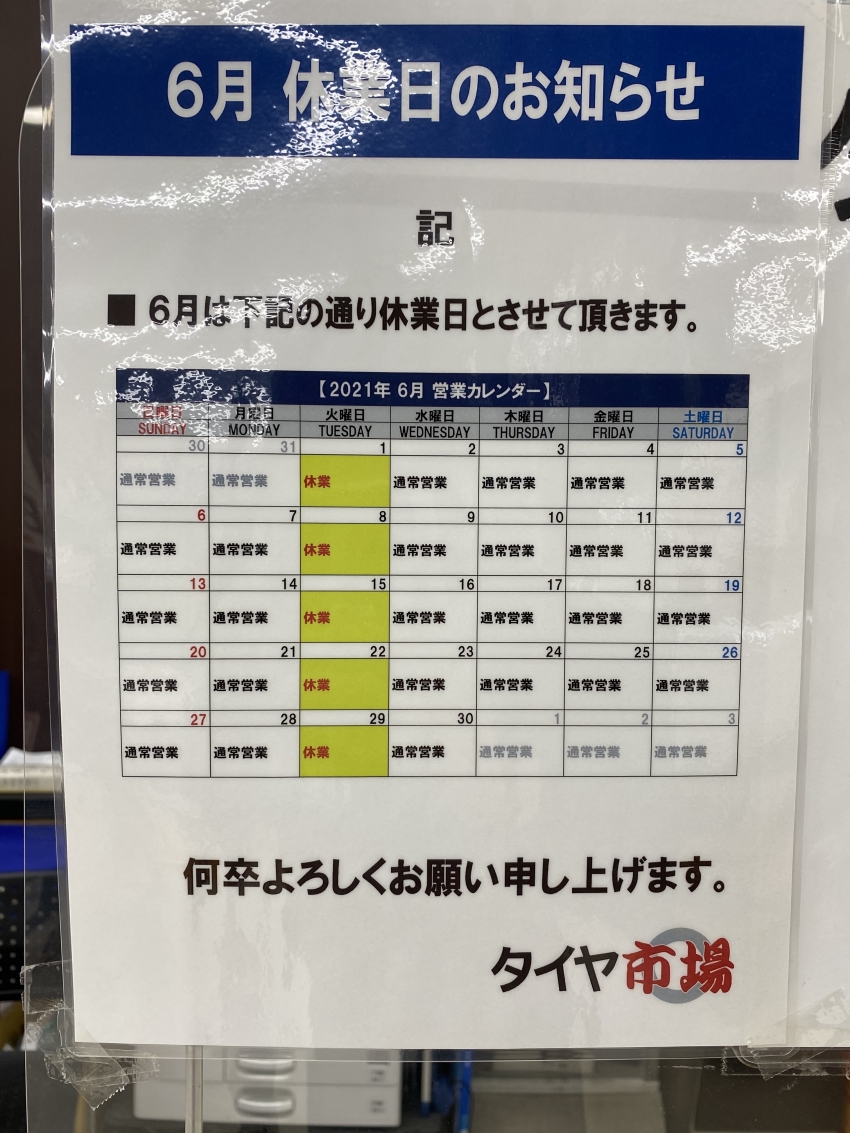 誠に勝手ながら明日21日(火)は店休日となります。