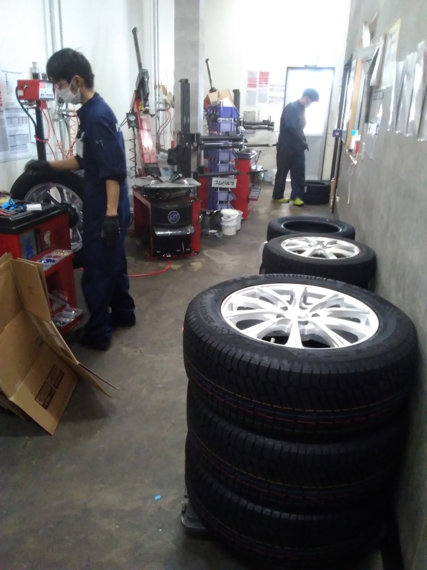 スタッドレスタイヤの組込作業中です!