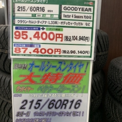 スタッドレスタイヤやオールシーズンタイヤの在庫確認等