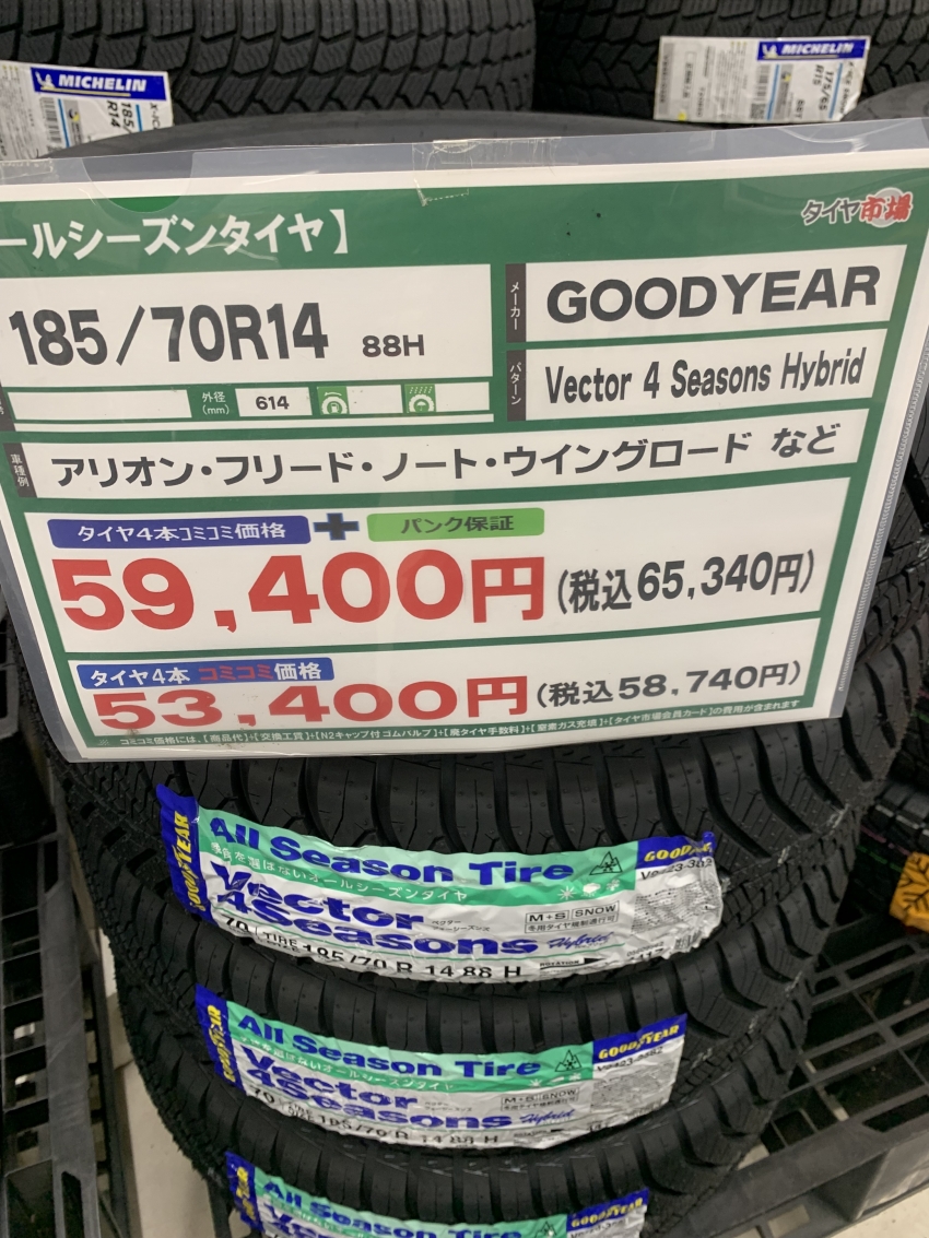 ステッカーにも記載がある通り、季節を選ばないオールシーズンタイヤなんです!