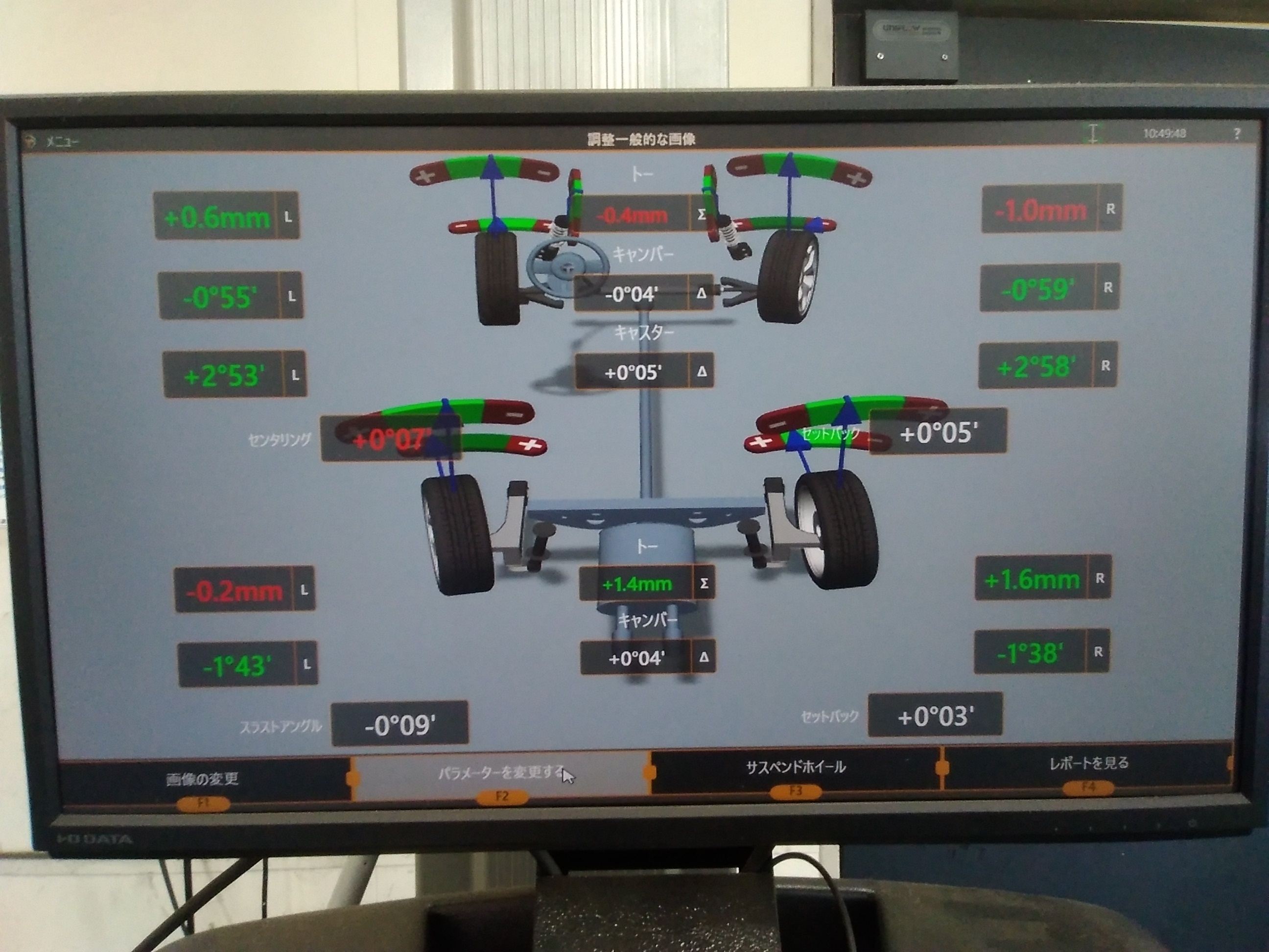 しっかり、左右対称に基準値に調整が