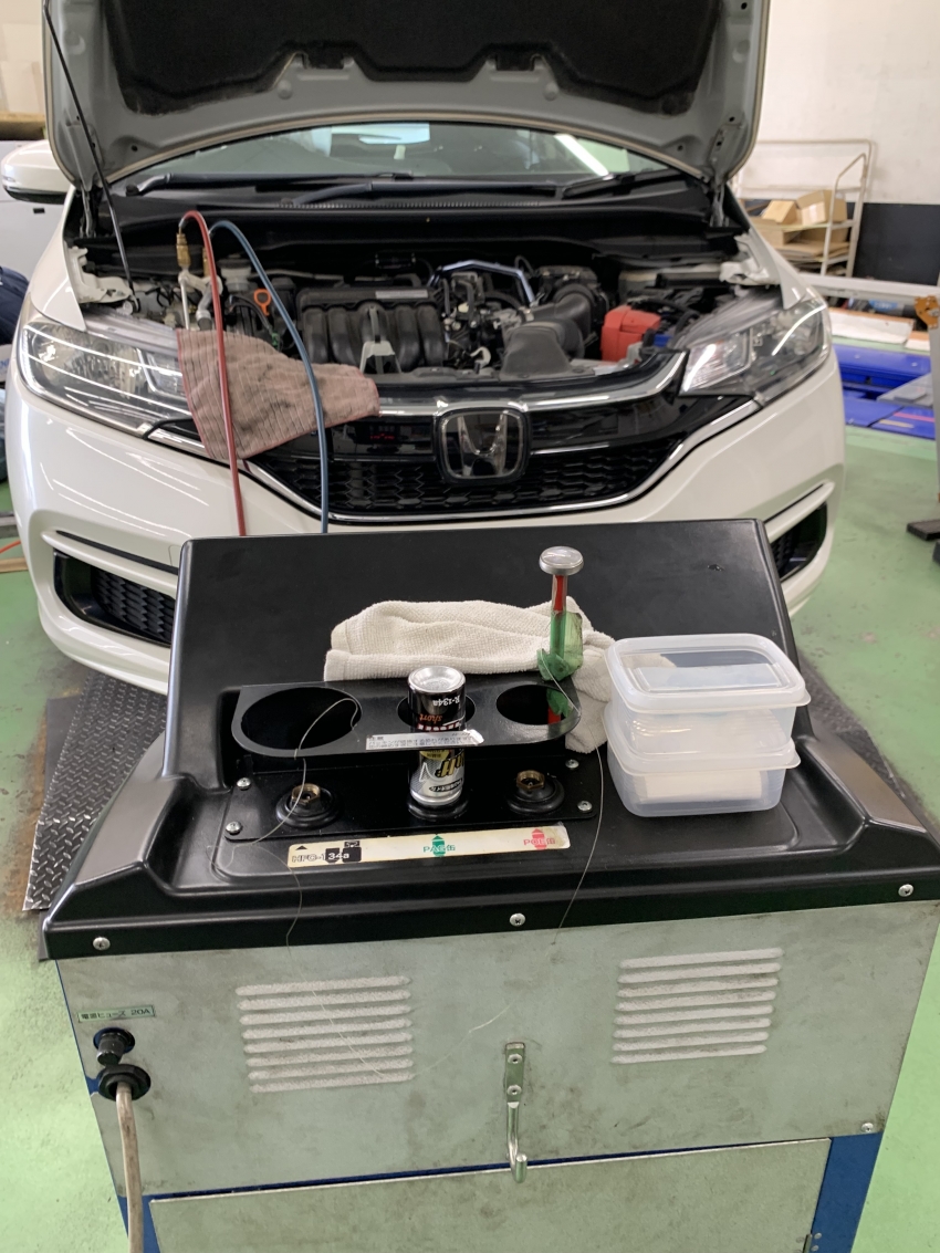 今回はフィットでエアコン真空引き作業をさせて頂きました!