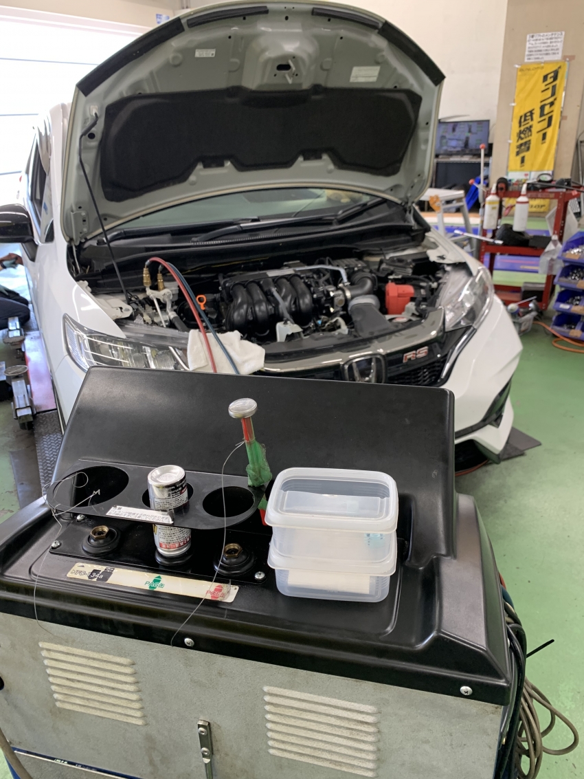 フィットでエアコン真空引き作業!!
