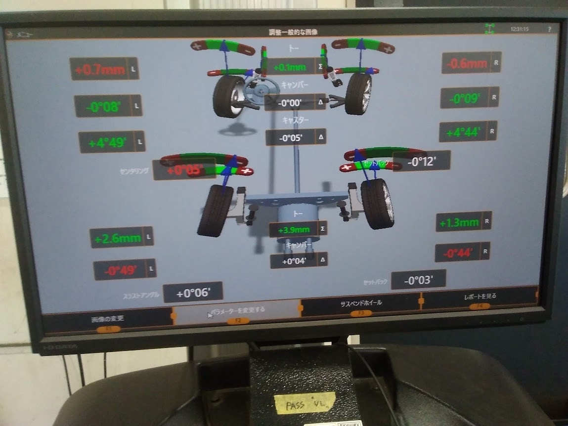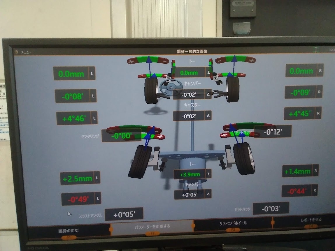 今回はしっかりと基準値で調整をし、タイヤの偏摩耗抑制をしました!
