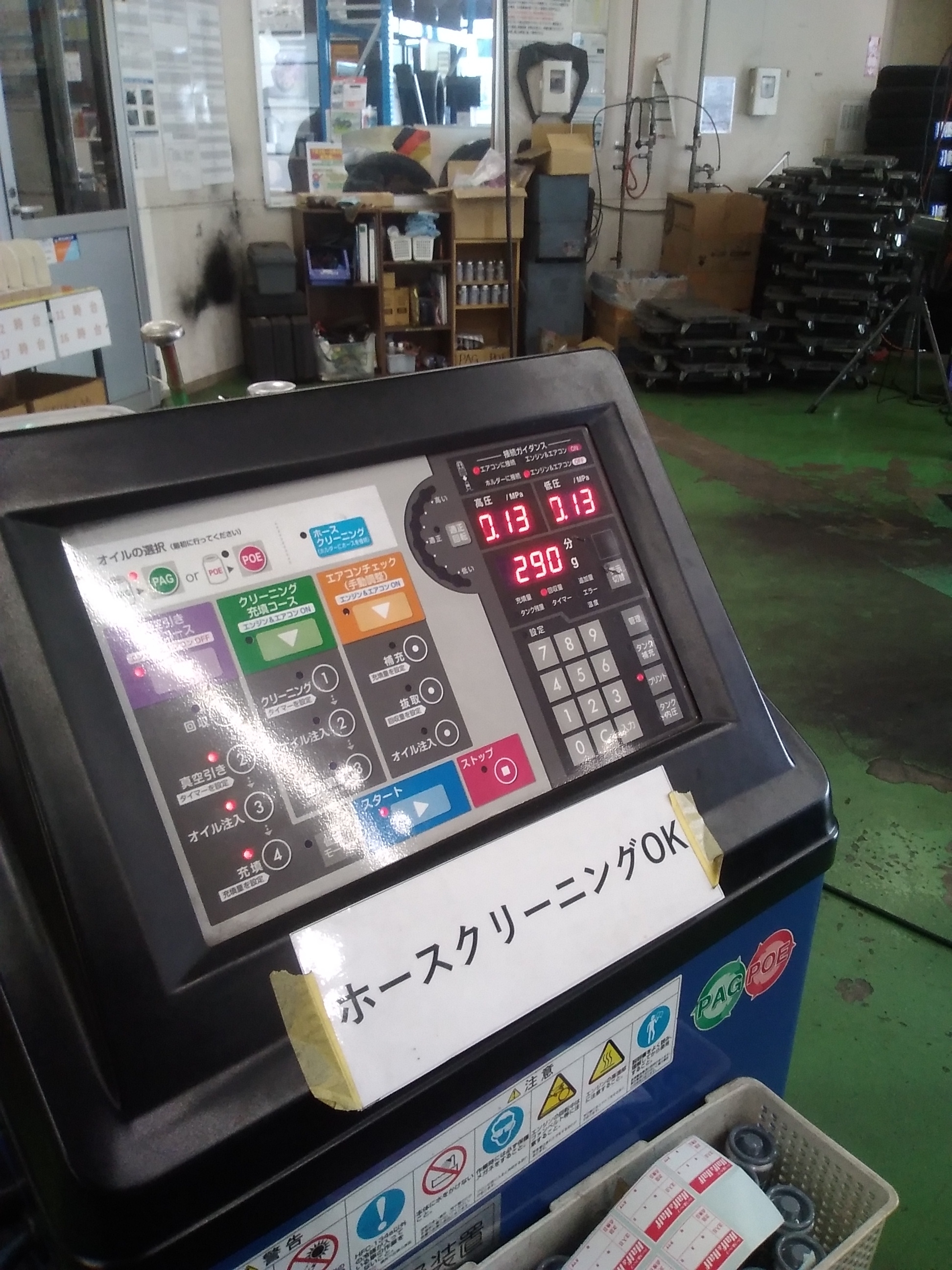 4 その後は、機械でお車のエアコンガスを一旦全部抜きます