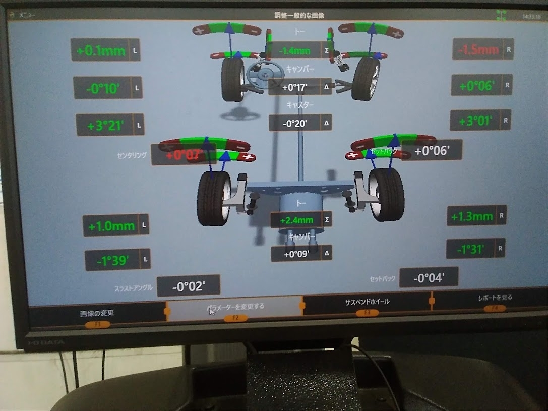今回はタイヤの偏摩耗抑制の為、基準値で調整をしました!