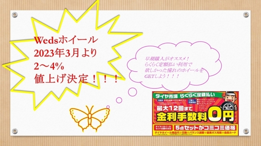 更にWedsホイールも3月より2~4%値上げとなりますので、