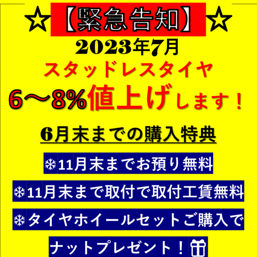 ※スタッドレスタイヤ値上げします!2023年7月より6~8%【早期購入特典あり】