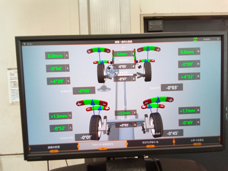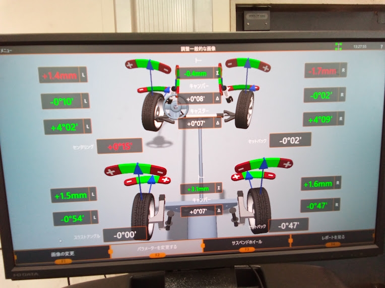 測定をした結果フロント左右がのトーが大きくズレてしまっていました!