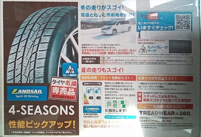 お財布にも優しいオールシーズンタイヤを是非、お試し下さい!!