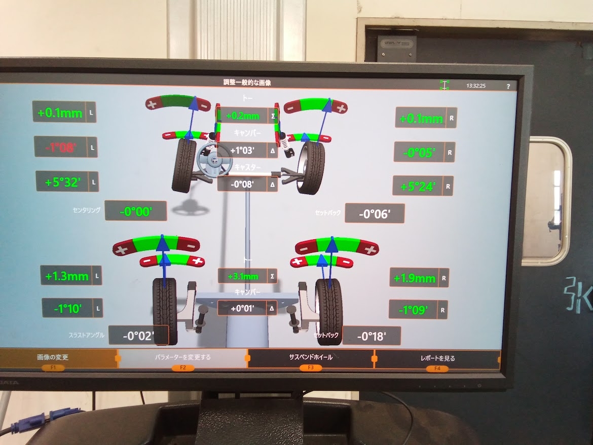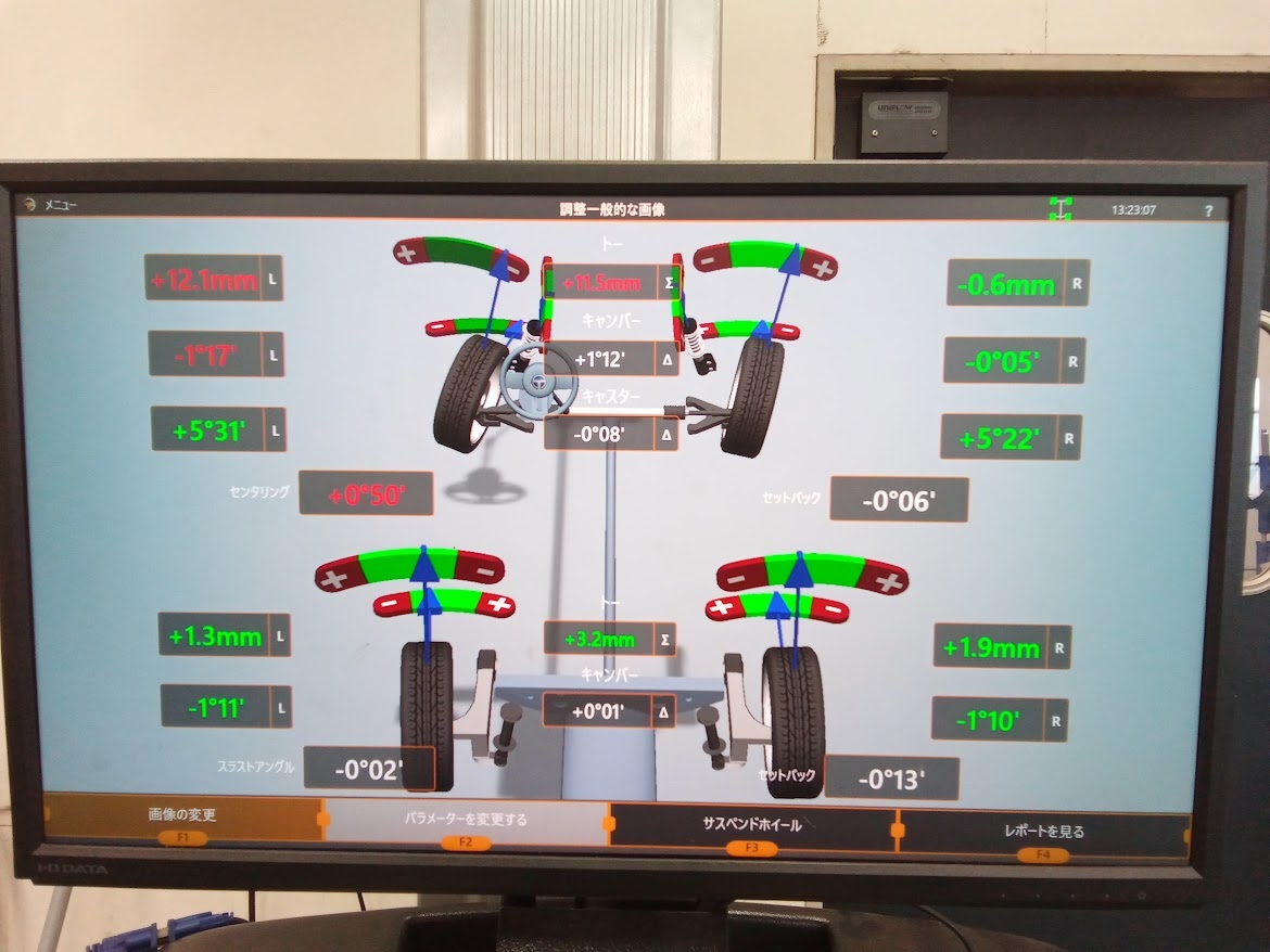 測定をした結果フロント左右でズレが出てしまっていました!