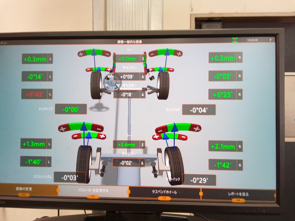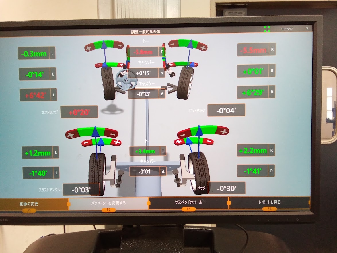 測定をした結果フロント左右でズレが出てしまっていました!