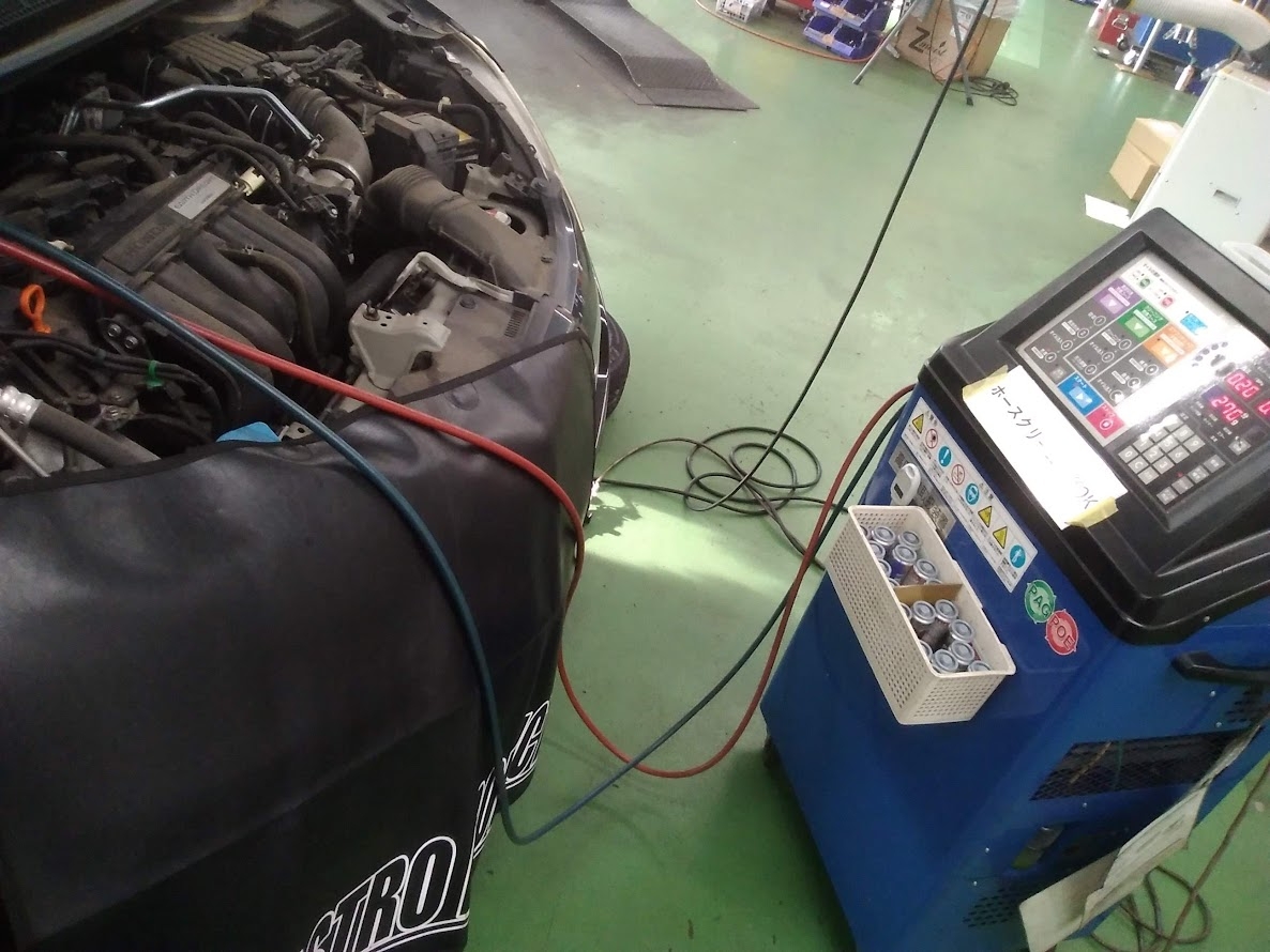 カーエアコンガスのメンテナンスの最上級工程です!