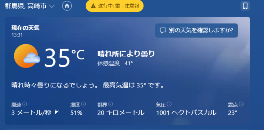 今日の高崎市 アツい! 激熱! エアコン大丈夫ですか?