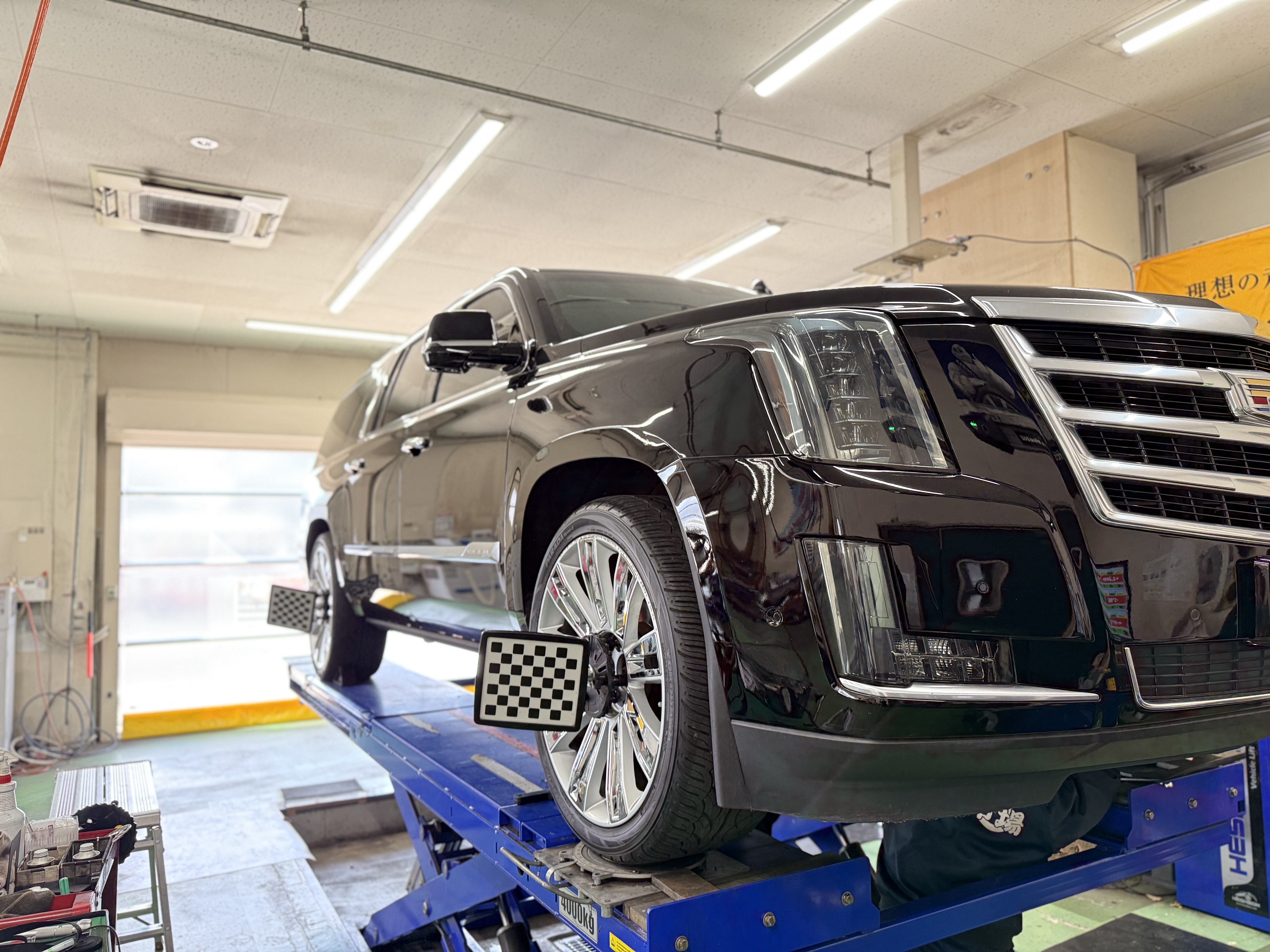 先日、キャデラックエスカレードでタイヤのターンオーバーとアライメント調整